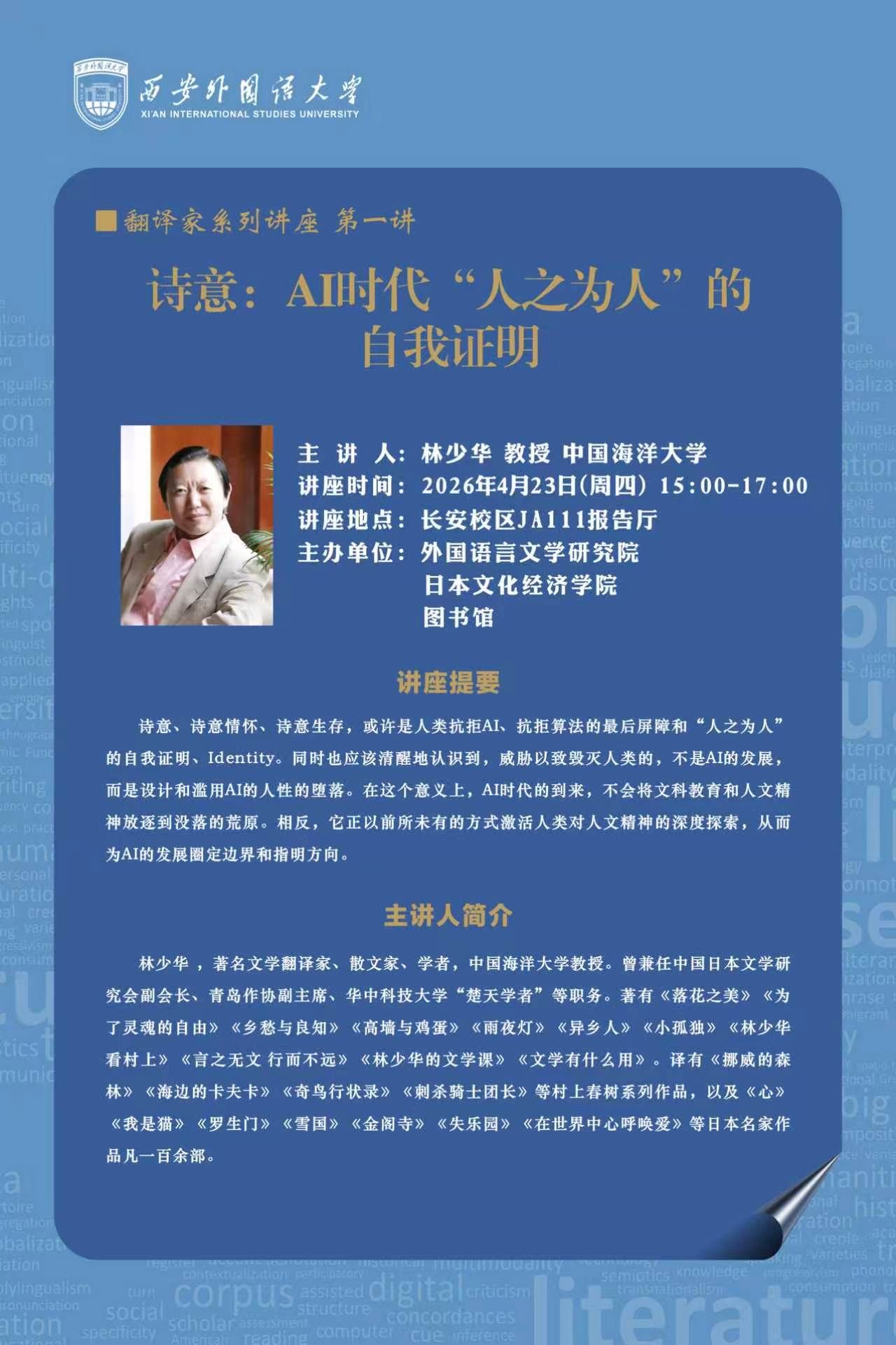 【讲座通知】诗意:AI时代“人之为人”的自我证明